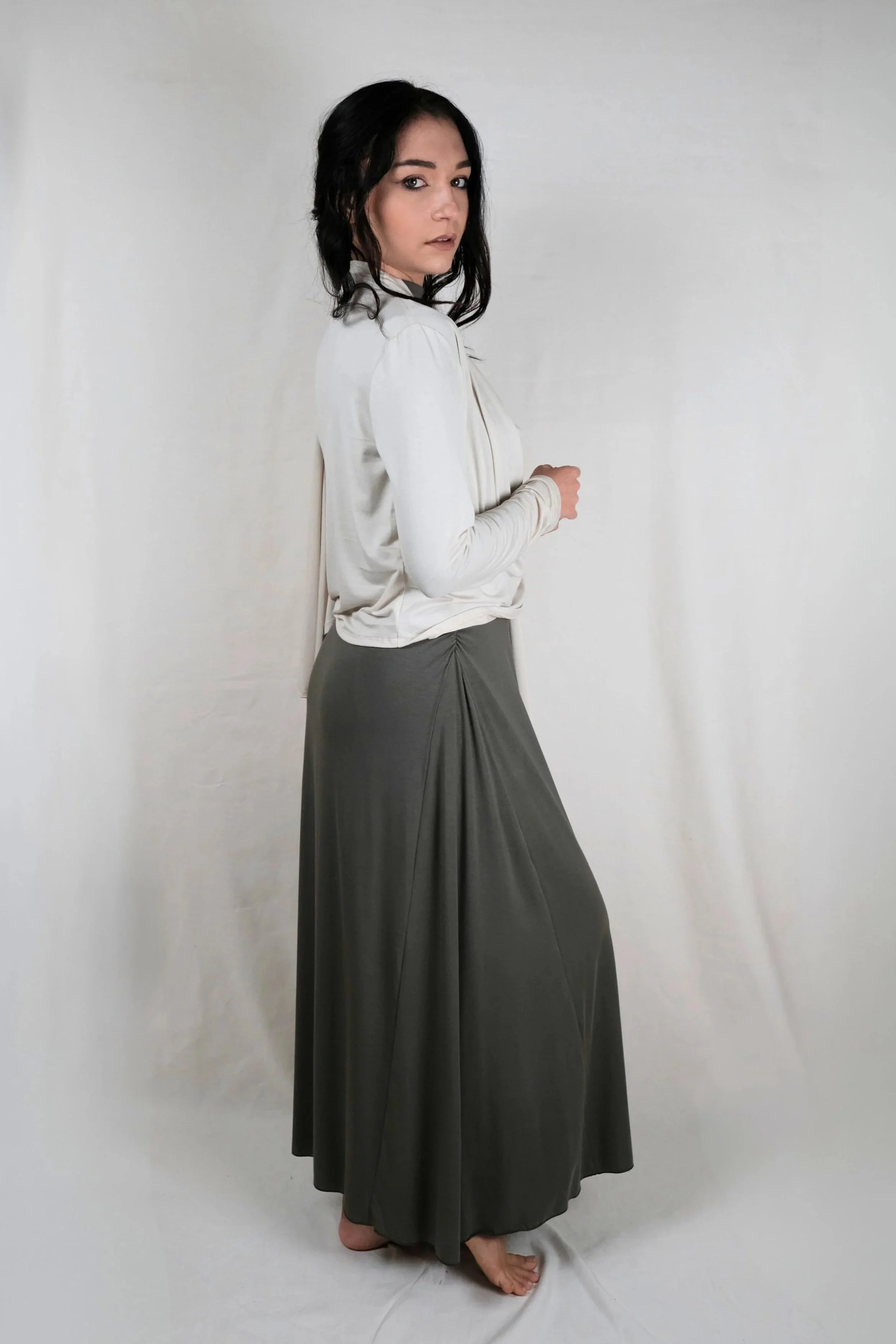 L'abito Polissena è un'evoluzione del nostro abito Cassandra, caratterizzato da un design più confortevole con collo alto e delicati drappeggi sulla spalla e sui fianchi che valorizzano naturalmente la silhouette. I due inserti laterali creano un gioco geometrico che dona movimento e un carattere contemporaneo al capo.